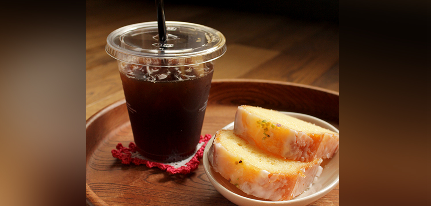 今回は、爽やかなレモンケーキとアイスコーヒーのセットです。