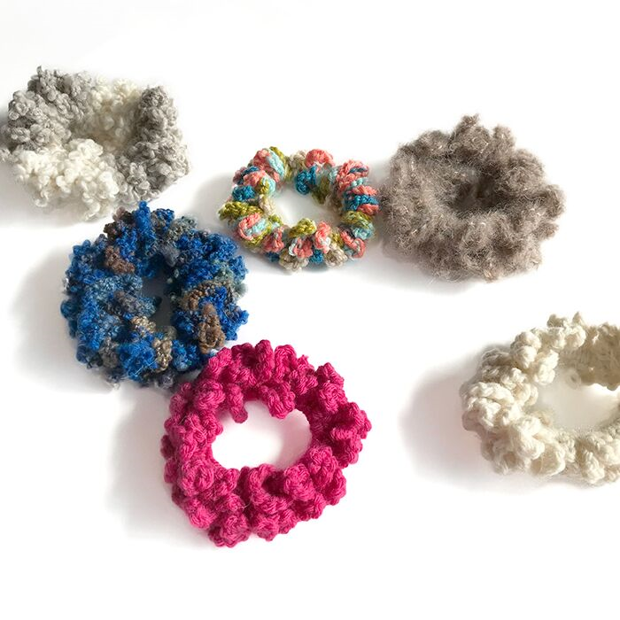 イトコバコでははじめての方でもすぐに完成する手編みのシュシュを作ります。