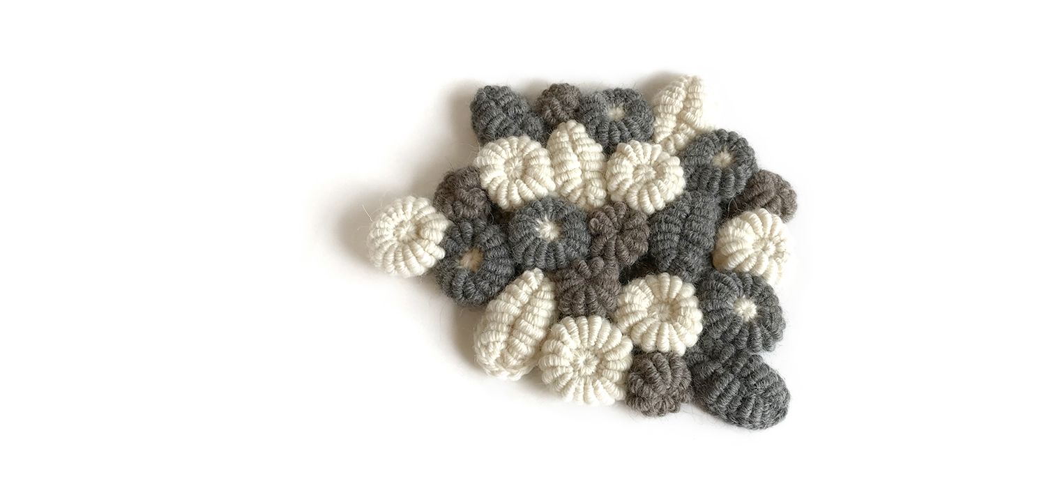 コイル編みは、コイルのようにクルクル針に糸を巻いて編んでいきます。