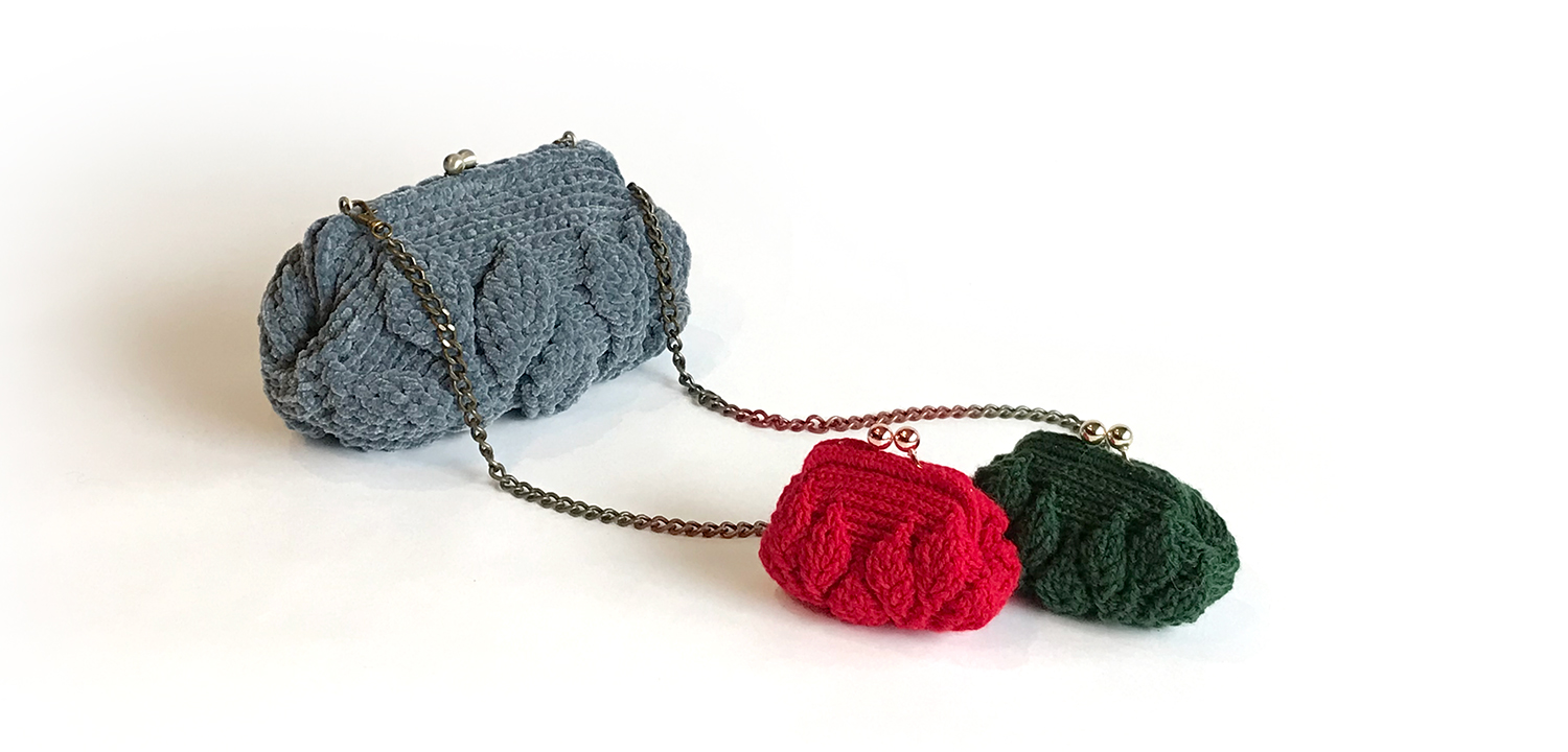 がま口とバックは編みつける口金を使用していますので、取り付け簡単!
