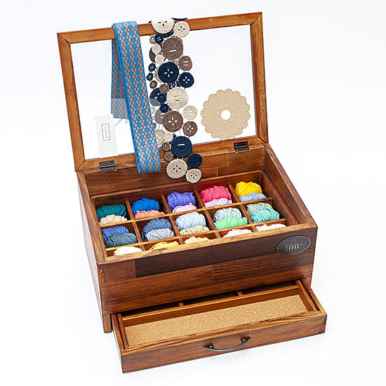 編み物道具の収納にとっても便利な『木製ニッティングボックス』パーセントミニ30色と小物作品の編み図