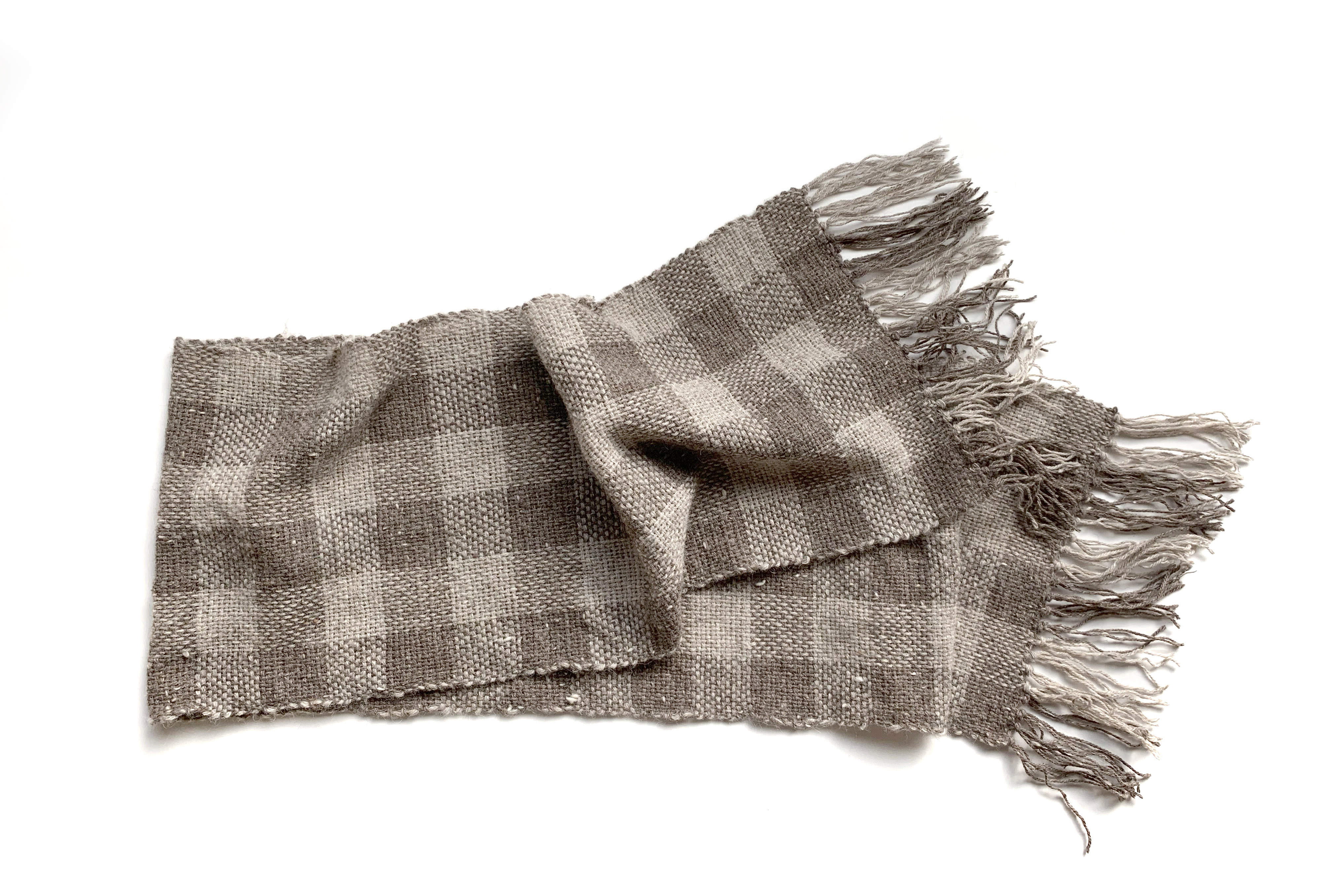 今月の手織りは、ギンガムチェックのマフラー