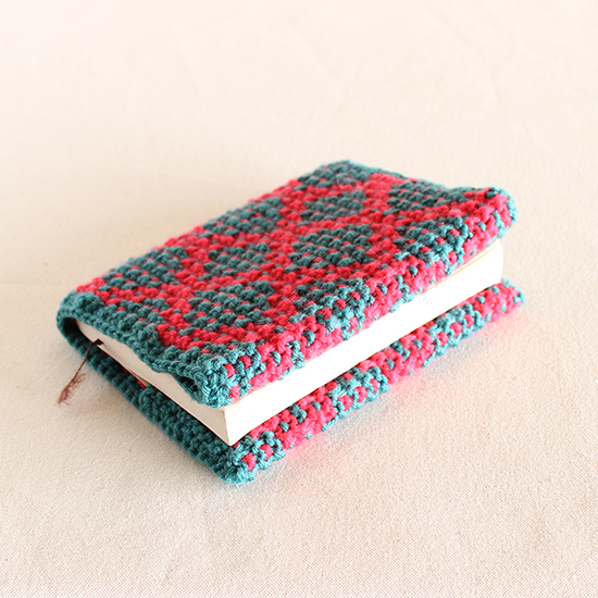 『すべり目模様のブックカバー』『すべり目模様のアームウォーマー』2種類の編み図をプレゼントいたします!