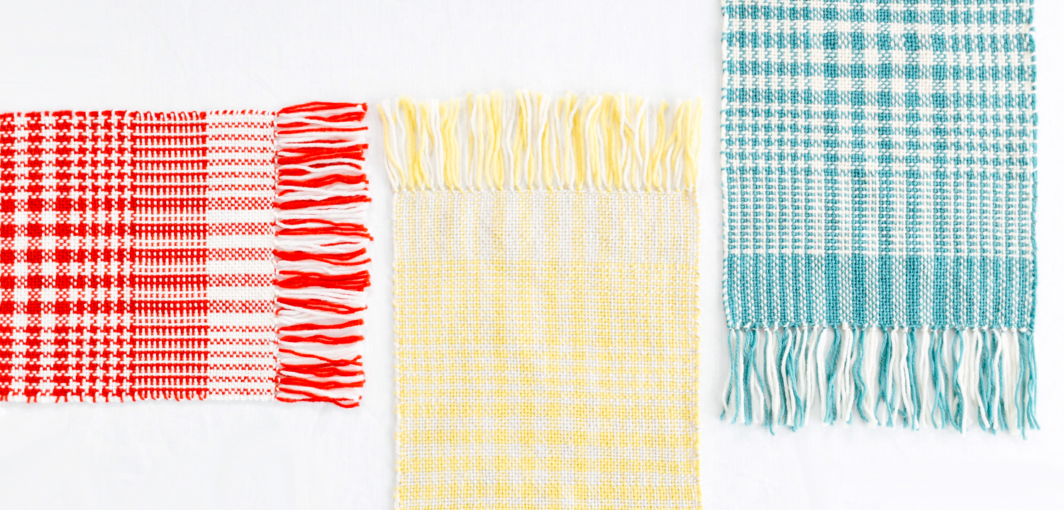 様々な模様の織り方を学びます。 手織りの基本レッスン①