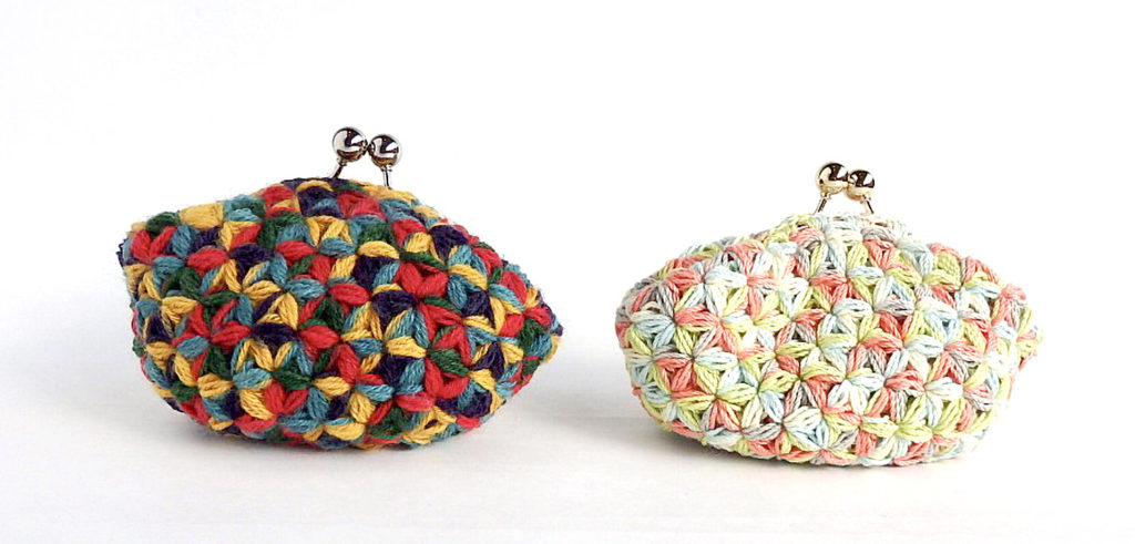 花びらのような編地に仕上がる『リフ編み』でつくるがま口です。