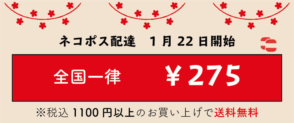 1月22日よりイトコバコオンラインショップの配送方法で『ネコポス』を選択できるようになりました。