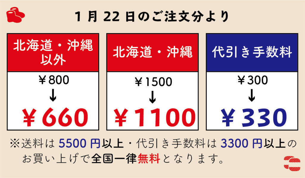 配送方法の追加、及び送料・代引手数料改定のお知らせ