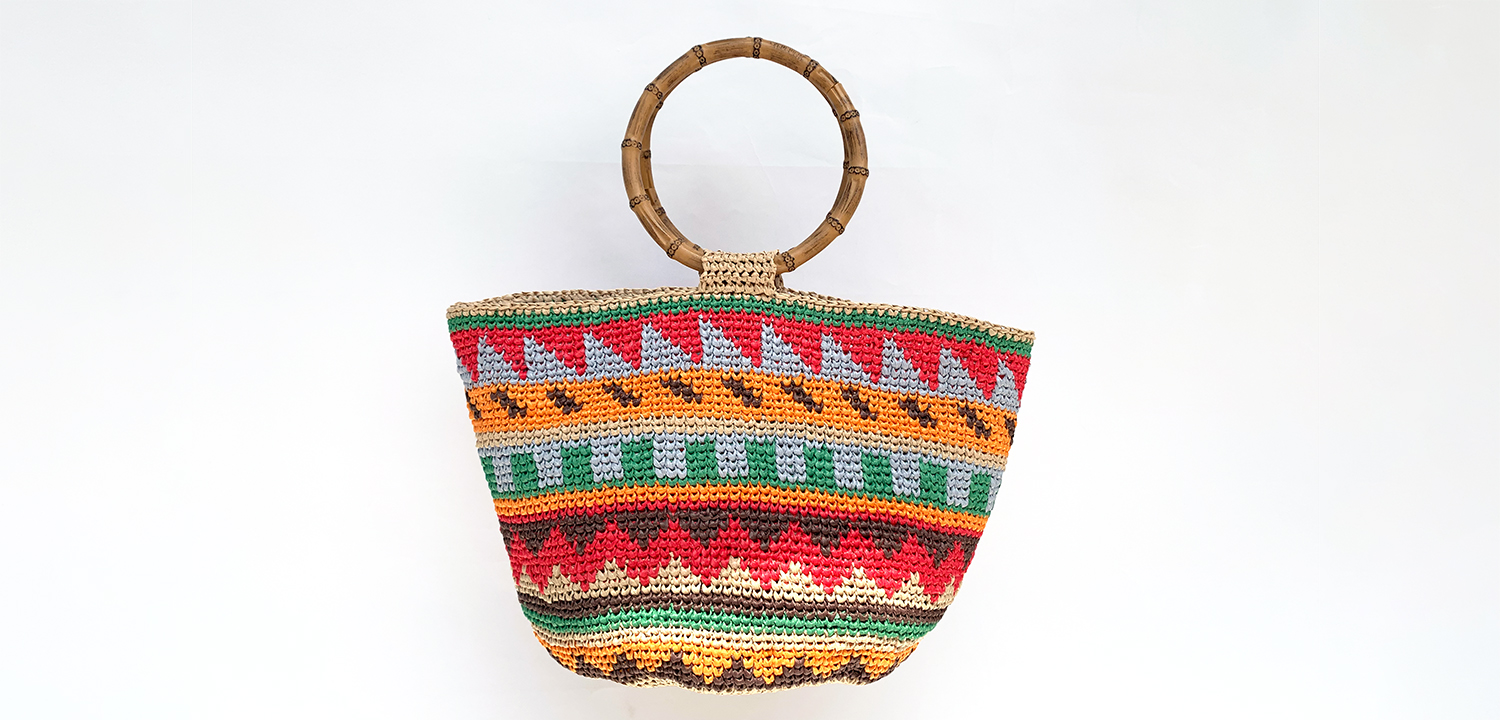 メリヤス細編みの編み込みバッグ