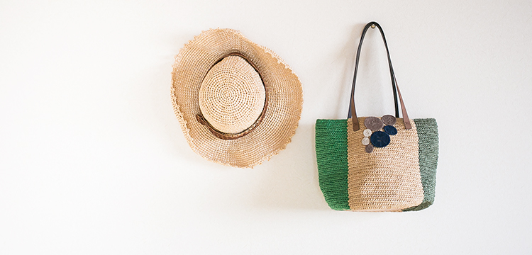 春夏ならではの涼しげなラフィア風の素材感が楽しめる、「エコアンダリヤ」を使用したバッグと帽子を編んでみませんか?バッグは「レザー底」とレザーハンドルを使用、帽子にはつばの部分に「テクノロート」という形状保持材を使用しているので、どちらのアイテムも本格仕様です。バッグか帽子、どちらかご希望のアイテムをお選びください。