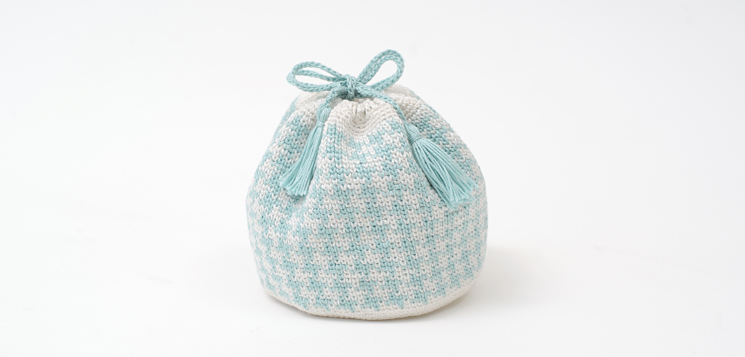 かぎ針編みだけど、メリヤス編みに見える編み方の巾着。
