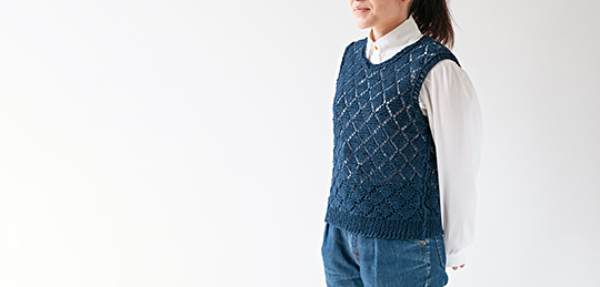 「フラックス」というリネンの糸を使用して、初夏まで来ていただくことができるベスト。
