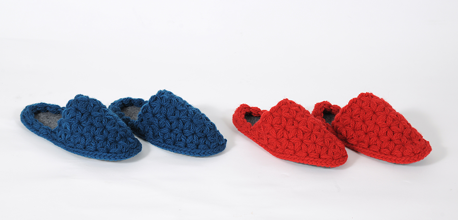 お花のようなかわいい編地に仕上がるリフ編みのスリッパ