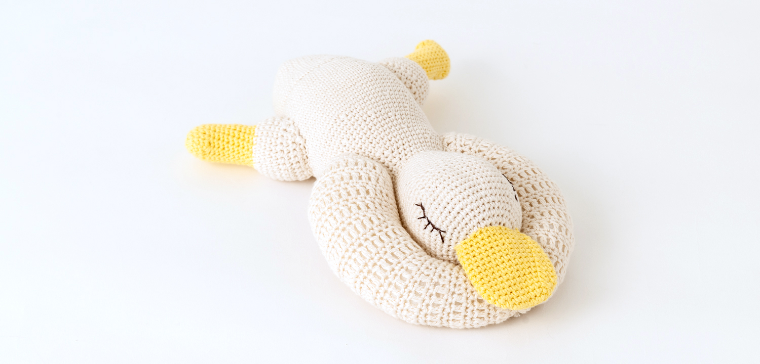 ピュアオーガニックコットンの糸を使ったあひるちゃんのあみぐるみ!