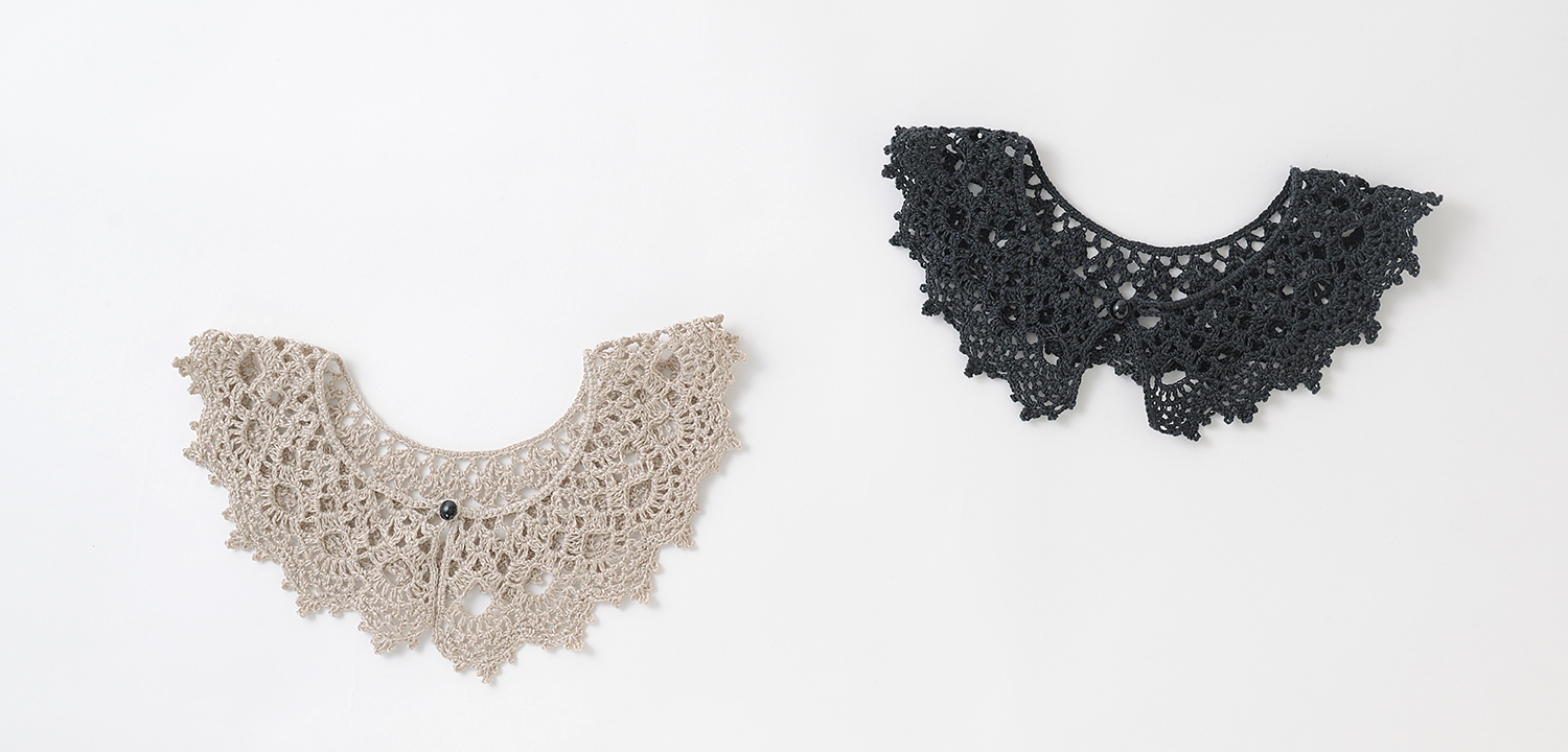 リネンで編むつけ衿なので、大人っぽい雰囲気でコーディネートできるのもポイント♪