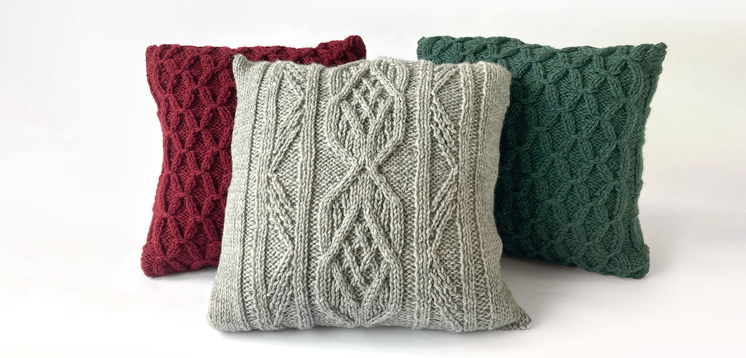 2パターンのデザインから選んでいただける、模様編みのクッションカバーです♪