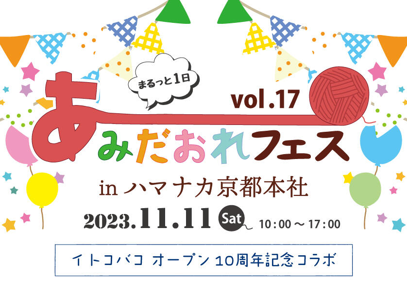 イトコバコ10周年を記念したあみだおれフェスをハマナカ本社にて開催します。