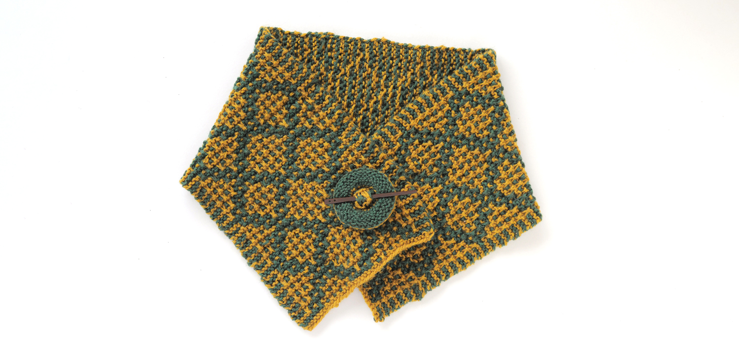 すべり目でモザイク模様を編んでいくマフラーです。