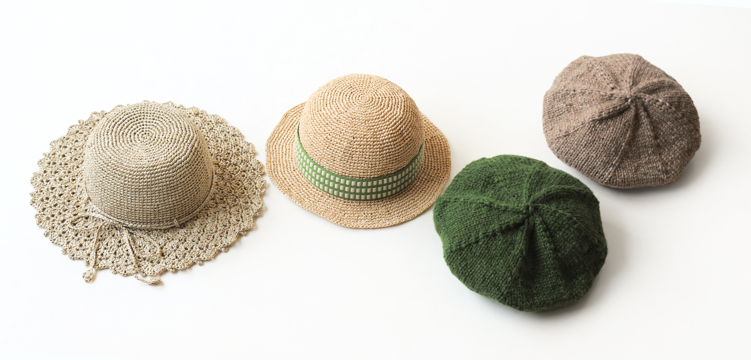 エコアンダリアで編む夏の帽子や毛糸で編む帽子など、編みたいデザインのぼうしを編んでいただけるワークショップです♪
