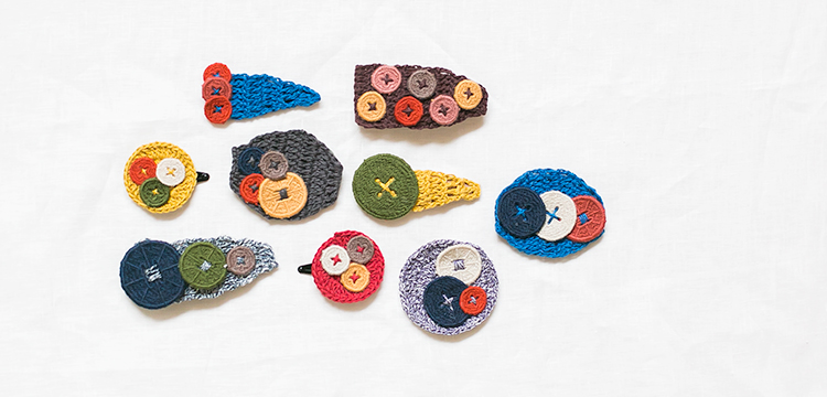 イトコバコの人気商品のボタンレースを、簡単なかぎ針編みの編み地と組み合わせてヘアアクセとブローチを作りませんか?編み地にはコットンとリネンの風合いが編みやすい「フラックスK」を使用。パッチン止め、バレッタ、ブローチのなかから2点お選びいただけます。当日に完成しますので、かぎ針編み初心者さんにおすすめのアイテムです。