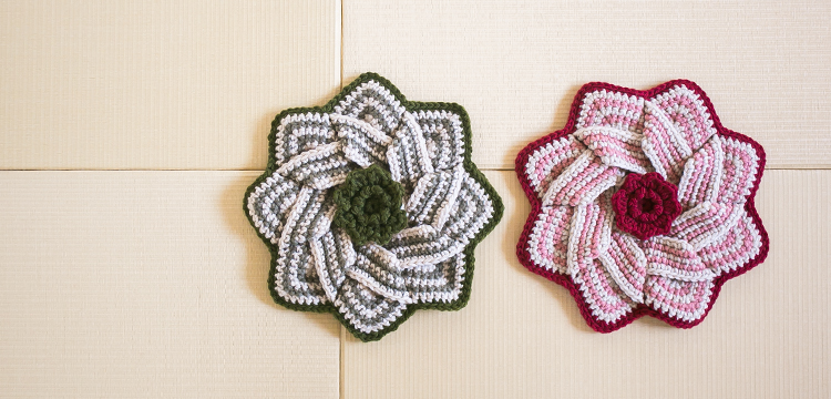 円座には様々な種類がありますが、今回の円座は「一筆書き」という技法です。複雑に編んで組んでいるように見えますが、なんと最初から最後まで続けて編める驚きの編み方です。ワークショップの時間内に完成を目指します。当日はジャンボニーのなかからお好みの色をお選びいただけます。