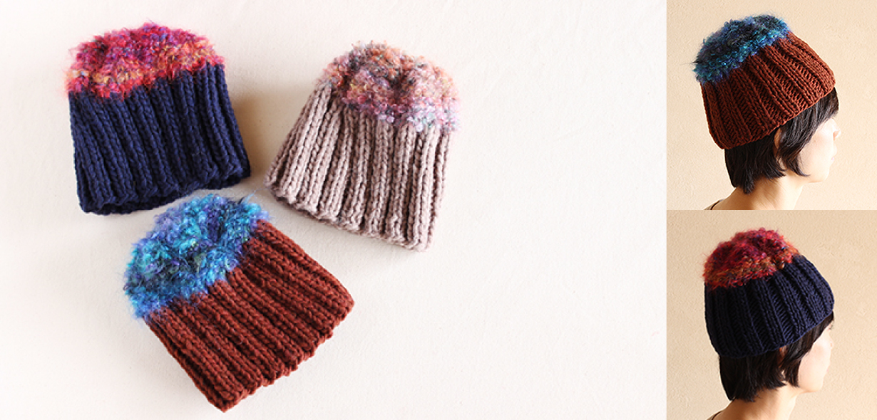 シュトゥルンペさんの冬の新作帽子が届きました!今回は糸の形状と色を生かしたシンプルなデザイン。4本の棒針を使用して「わ」に編みます。初心者さんにおすすめです。簡単な編み方なのに、身につけるとシュトゥルンペさんらしいデザインで、冬が待ちきれません。