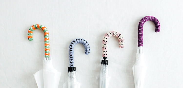 カラフルな糸でかさの持ち手カバーを作りませんか。まっすぐ編むだけなので簡単です。ビニール傘につければ自分だけのオリジナルになりますよ!アプリコの中からお好きな色を選んでいただけます。