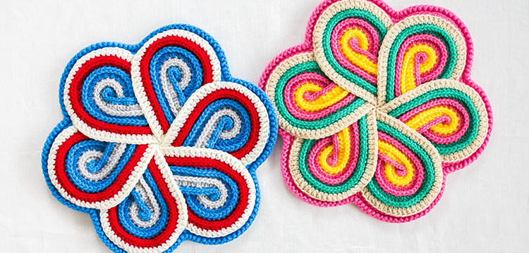 長いブレード1枚と裏面を編み、縁編みでまとめたら完成!!見た目よりも簡単に仕上がります。お好きな4色を選んで、お部屋を鮮やかに彩りませんか。ボニーの中からお好きなお色をお選びいただけます。 ※当日には完成しません。