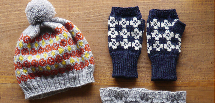 - 持ち物:帽子棒針4号・3号(4本針) ネックウォーマー棒針7号(4本針) ハンドウォーマー棒針4号・3号(短5本針)、とじ針