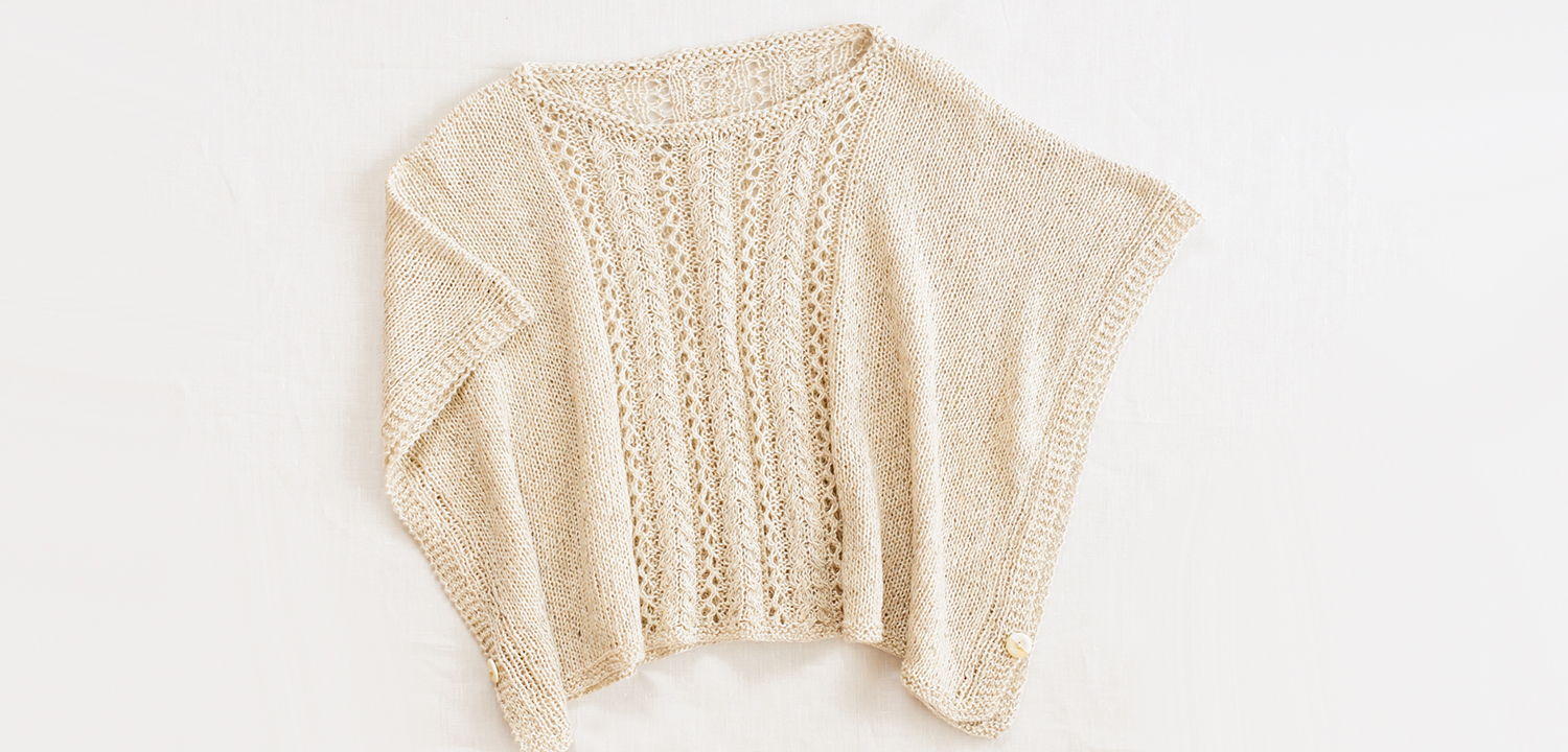 フラックスのツィードタイプでまっすぐに編むだけの簡単ポンチョを作りませんか。少しむずかしめなので棒針のできる方向けです。フラックスTwからお好きな色をお選びいただけます。難易度★★☆