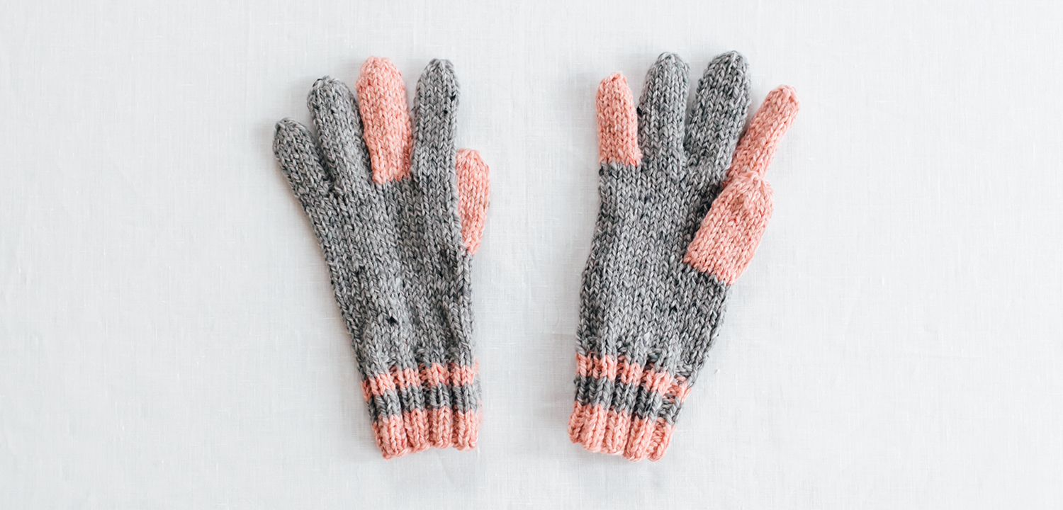 シンプルな編み方のてぶくろです。5本指に初挑戦の方にもおすすめです。