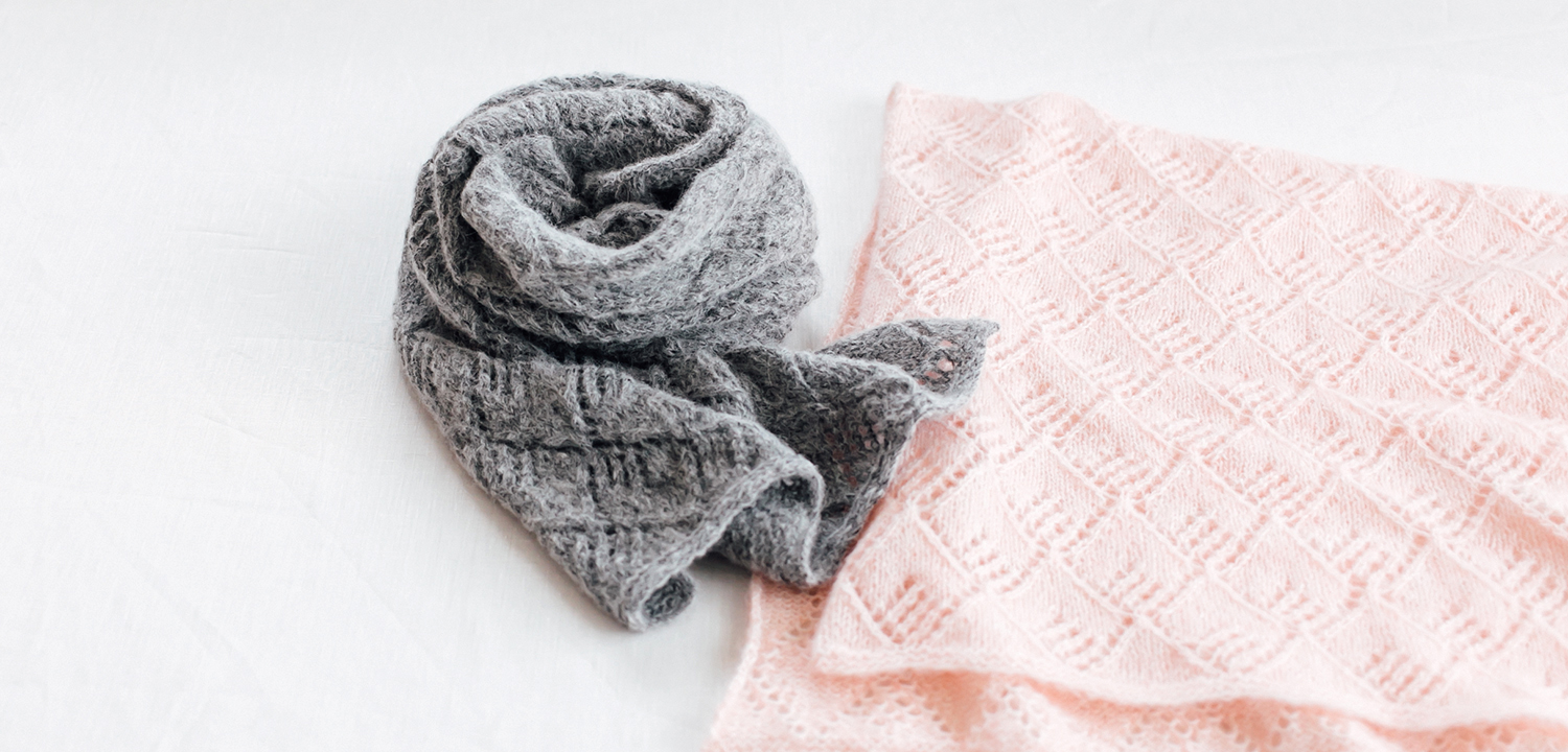 ダイヤ柄の透し編みのショール。