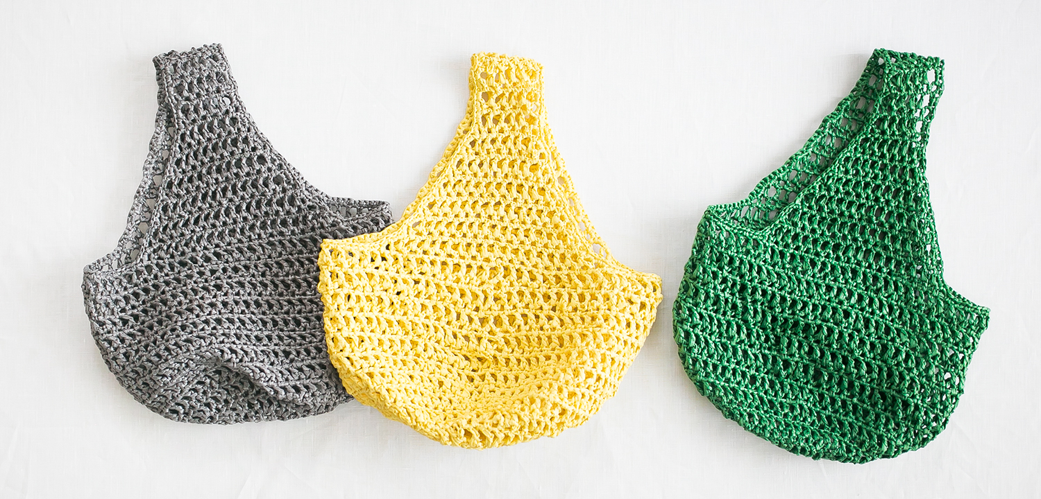 エコアンダリヤで編むワンハンドルネットバッグです。太めの持ち手で安定感があります。