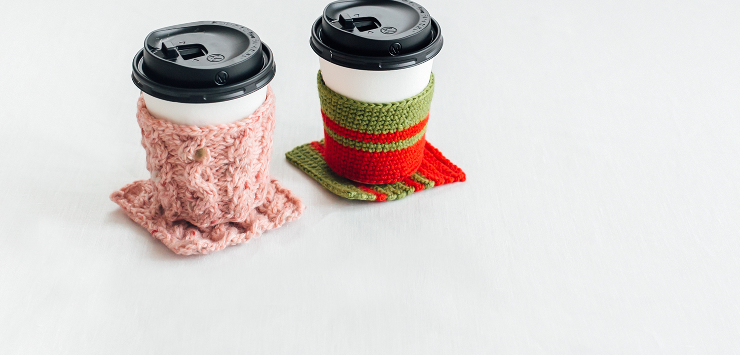 涼しくなってきましたね。ホットドリンク用に、カップカバーとコースター編みませんか。
