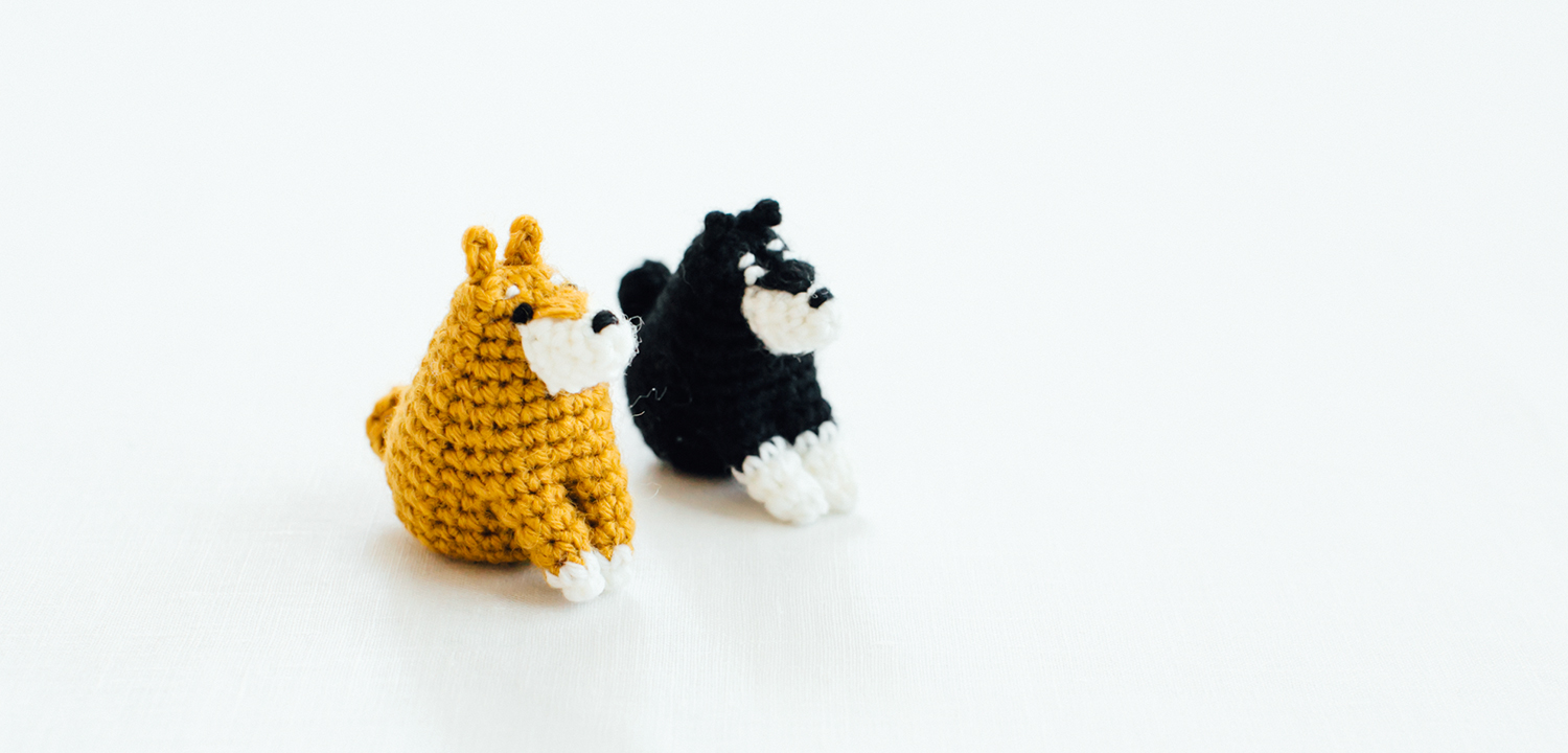 干支のいぬをあみぐるみでつくりませんか。ちょこんとおすわりがかわいらしいしばいぬです。