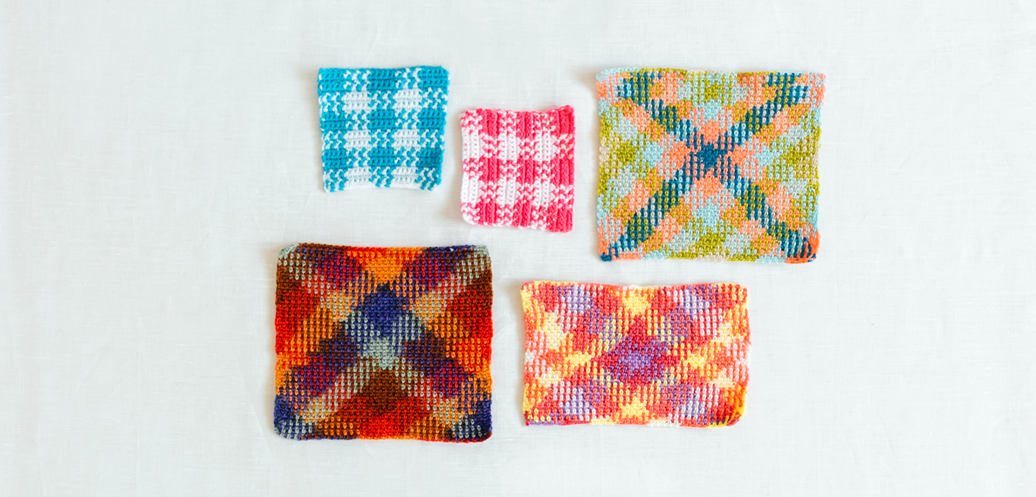 タータンチェック風ミニマットまたはギンガムチェックのエコたわし