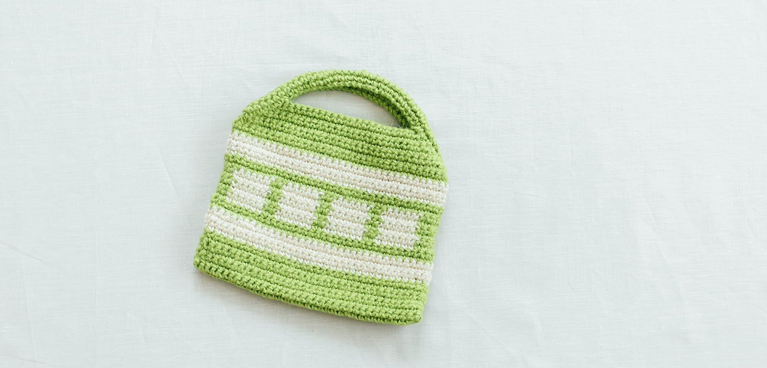 極太の麻糸でざくざく編む手さげバッグです。