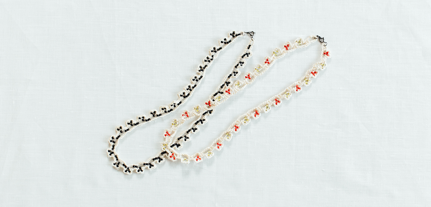 ビーズを編み込んで作るネックレスです。