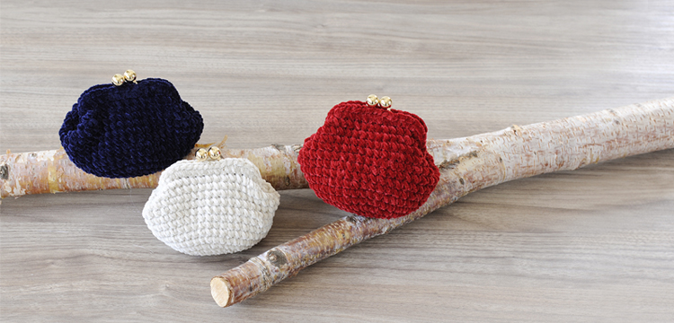 モールヤーンで編むがま口ポーチです。