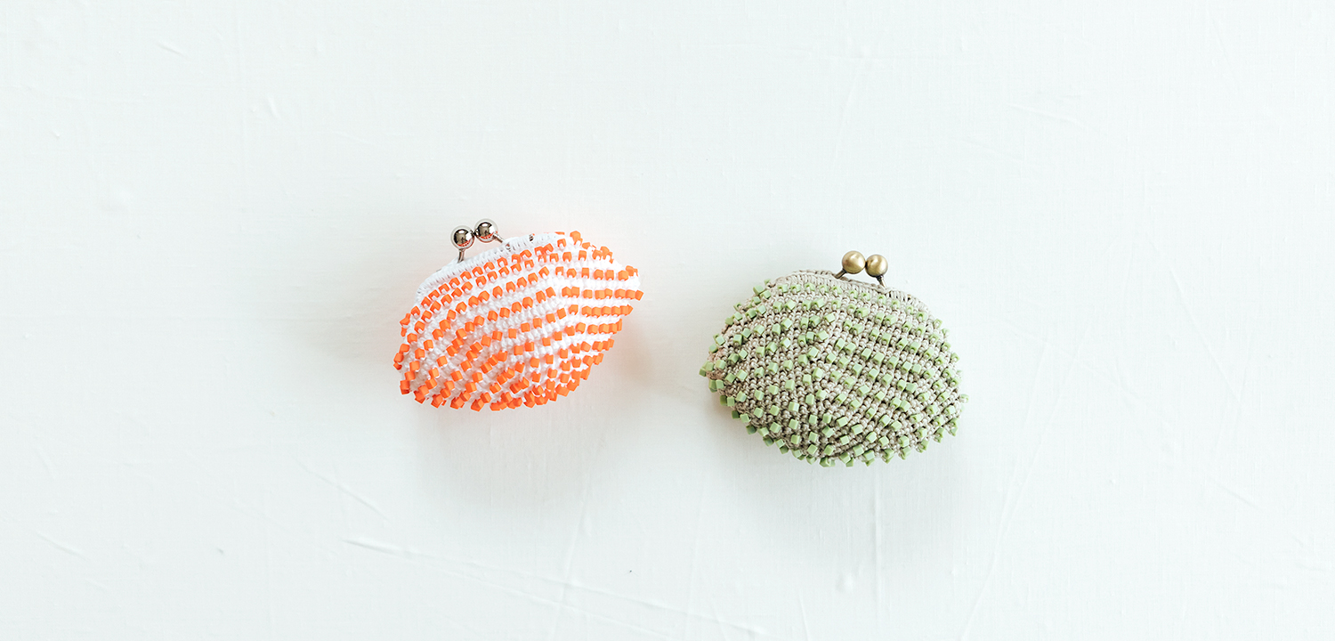 四角いビーズがポップで可愛らしいがま口のワークショップです。