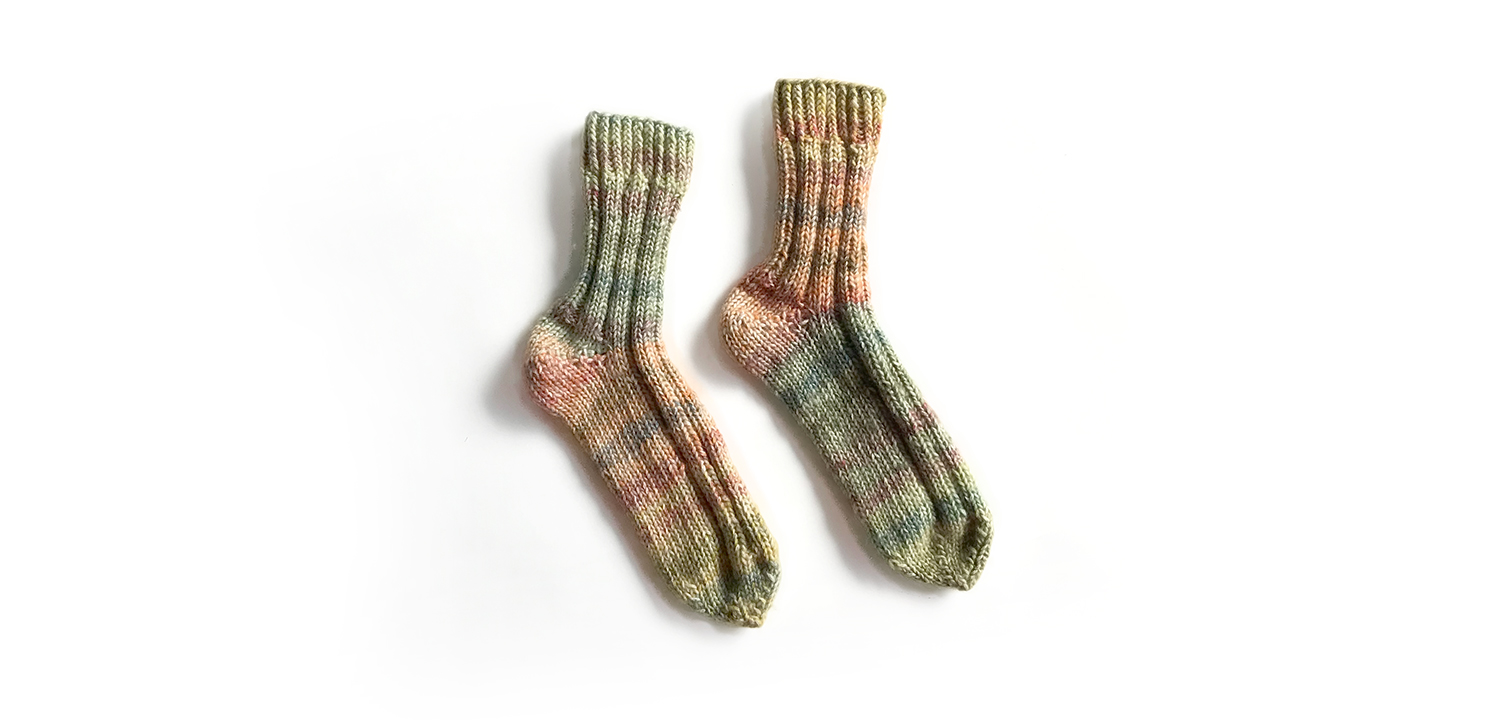 スプレープリントを施したカラフルな糸で編むソックスです。