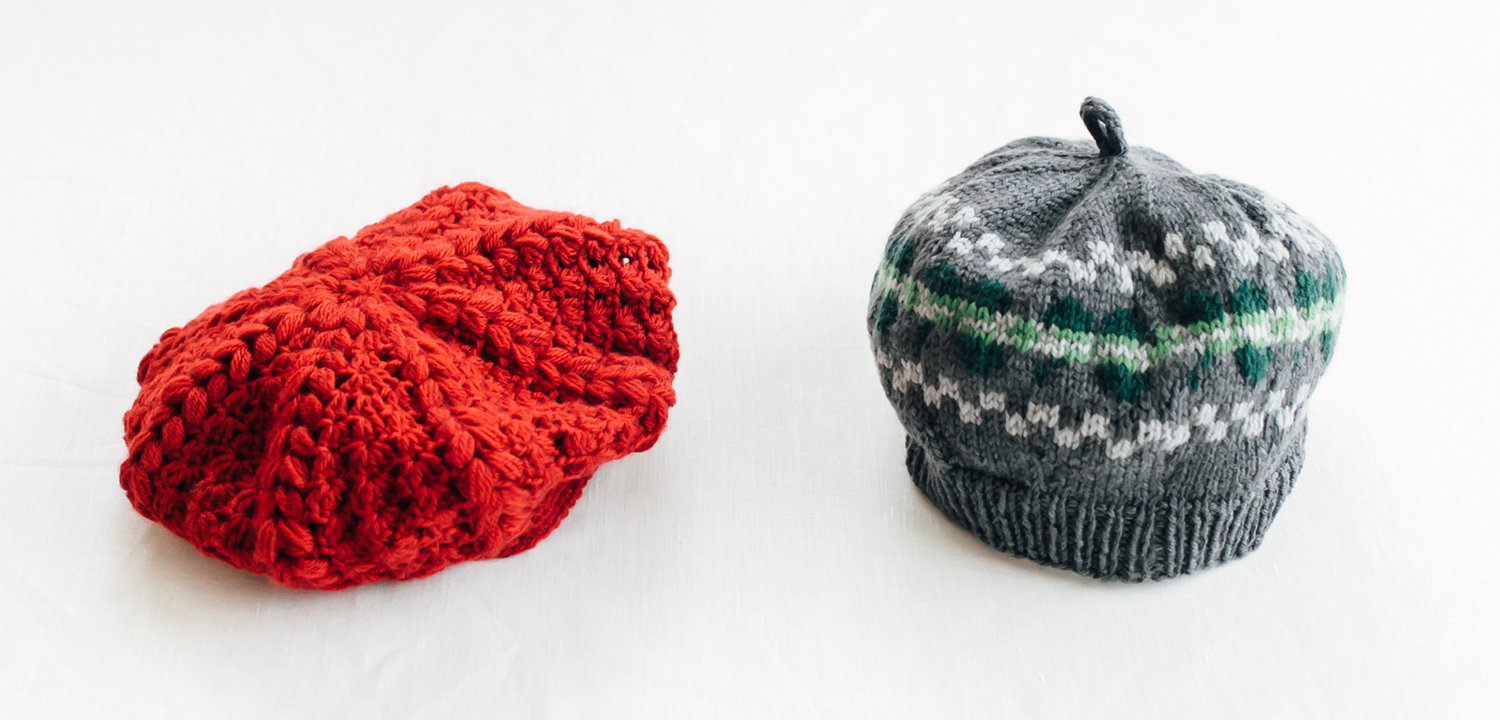 編み込みベレー帽・かぎ針編みのベレー帽