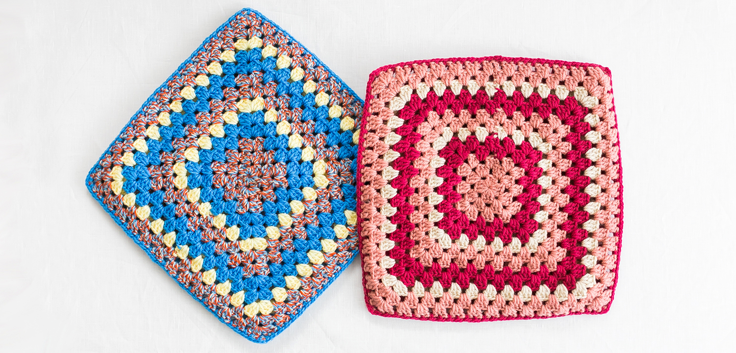 シンプルなグラニーモチーフの座布団です。